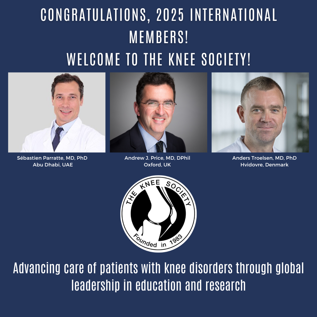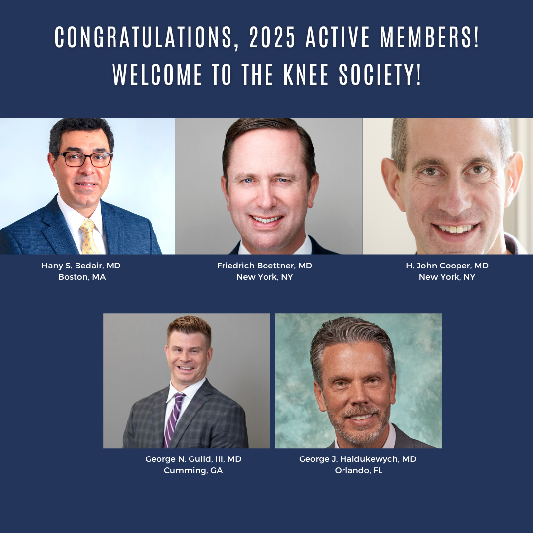 The Knee Society's membership is invitational. Candidates are identified by current members, and after an initial review by the Membership Committee Chair, may be invited to apply. Up to ten (10) new Active members may be admitted into the Society annually. The size of the Society is limited in its bylaws to no more than 105 Active members and 20 International members. Candidates undergo a rigorous review, and the process is competitive. Being a member of The Knee Society is an honor and a privilege, and a recognition of one's professional achievements.