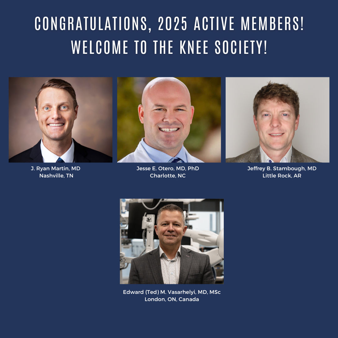 The Knee Society's membership is invitational. Candidates are identified by current members, and after an initial review by the Membership Committee Chair, may be invited to apply. Up to ten (10) new Active members may be admitted into the Society annually. The size of the Society is limited in its bylaws to no more than 105 Active members and 20 International members. Candidates undergo a rigorous review, and the process is competitive. Being a member of The Knee Society is an honor and a privilege, and a recognition of one's professional achievements.